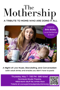 Created and hosted by local singer/actor, music teacher, and fellow mom Britt Bailey, with Caitlin Hayes (pianist, Music Director of Kimberly Akimbo at Arts Club, and fellow mom) and special guest artists bringing their own stories and perspectives on motherhood.